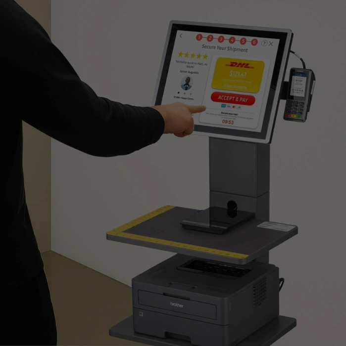 Les tarifs DHL Express dépendent de la destination, du poids et de la taille du colis. les kiosques Klickship affichent instantanément des prix DHL Express transparents avant le paiement.